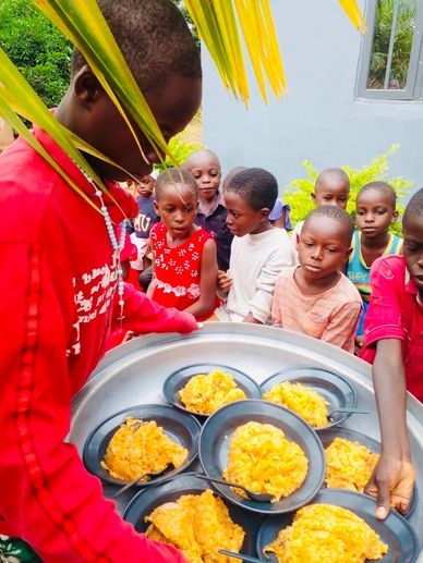 Children, because of their young developing bodies need proper nourishment to help them attain their full potentials. Most of the children in the communities where we work come from very poor socioeconomic backgrounds which limits their access to adequate nourishment. With so many hungry mouths to feed we aim to provide at least one nutritious meal to children in these communities. While this is far from adequate, one meal a day means the world to a child who has nothing eat.